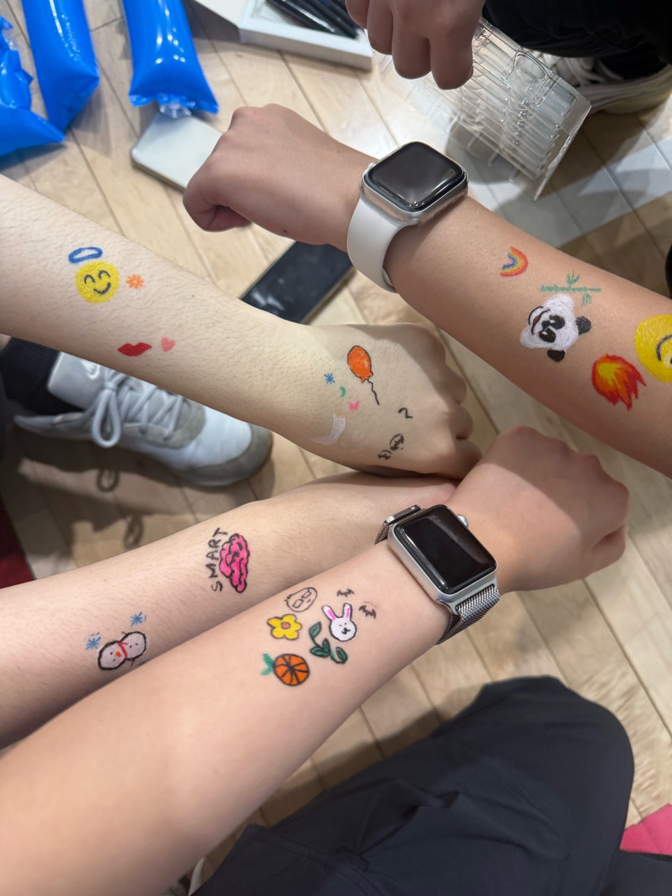 페이스페인팅 물감으로 팔 이곳저곳에 낙서도 즐겼답니다 🫶